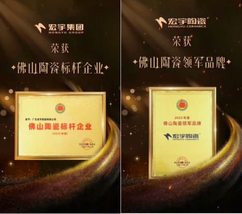 此次盛会之上,宏宇集团、宏宇陶瓷一举揽获 “佛山陶瓷标杆企业”、“佛山陶瓷领军品牌”、“佛山陶瓷 ® 推广奖” 三项重磅殊荣,尽显行业标杆风范。